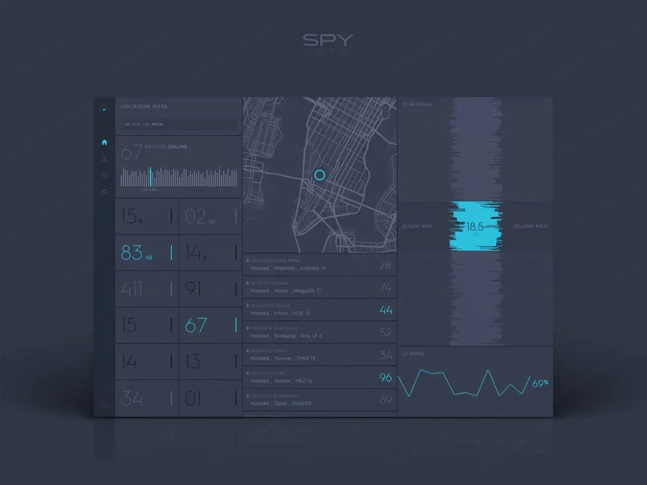 SpyNote Android Phone Control Software Interface - Remote Administration Tool Dashboard